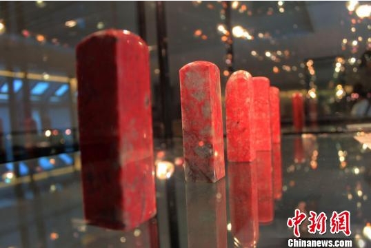 百余件陜西旬陽雞血石在西安展出