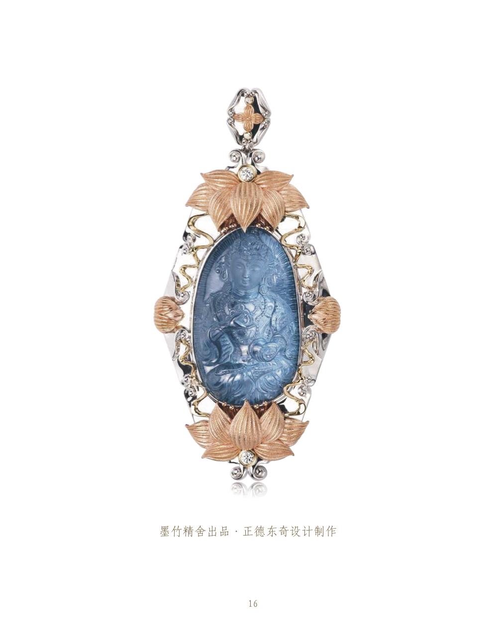 法相莊嚴、神態慈祥、完美比例、考究細節,難得一見的珍品,配以特別設計和復雜的金工制作。榮膺2018第三屆“天工精制”國際珠寶作品大賽 最佳材料突破獎。