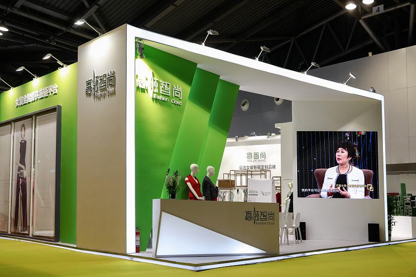“女人,有夢想就不會老”,“我根本沒把年齡放在心上,只要你有夢想,想做下去,這就夠了”……贏領智尚展館一角的電視墻上,正在播放央視主持人朱迅的高端對話節目《對話新時代》片段,女裝智能制造領域的傳奇人物——贏領智尚董事長陳靈梅女士,在與朱迅的對話中,講述了她在70+高齡勇敢追夢,勇闖智能新領域的故事,吸引了眾多參展觀眾的駐足觀看。