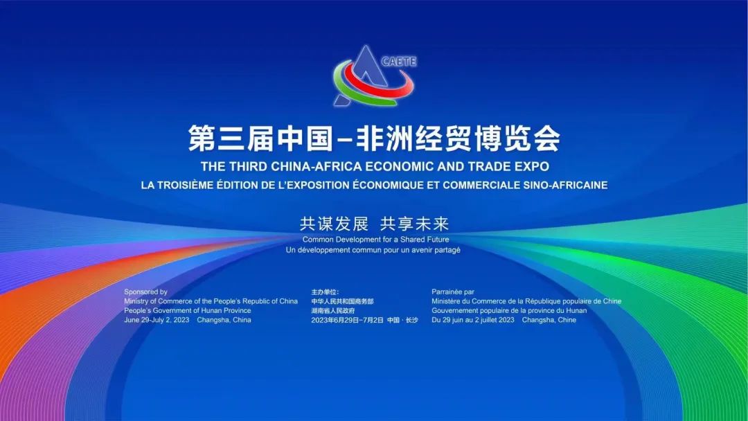 第三屆中國一非洲經貿博覽會將于2023年6月29日-7月2日在湖南省長沙市舉辦,主館設在長沙國際會展 中心,共6個室內展館及1個室外展區,分館設在中非經貿合作促進創新示范園(湖南高橋大市場)。博覽會以 “共謀發展,共享未來”為主題,聚焦中非合作論壇第八屆部長級會議精神,圍繞中非合作“九項工程”重要 舉措的落實,將舉辦形式多樣、內容豐富的各類活動。屆時,中國和非洲各國政要、使節、國際組織代表、金 融機構、企業家、商協會、專家學者及媒體代表等數千人將齊聚長沙,共襄盛會。
